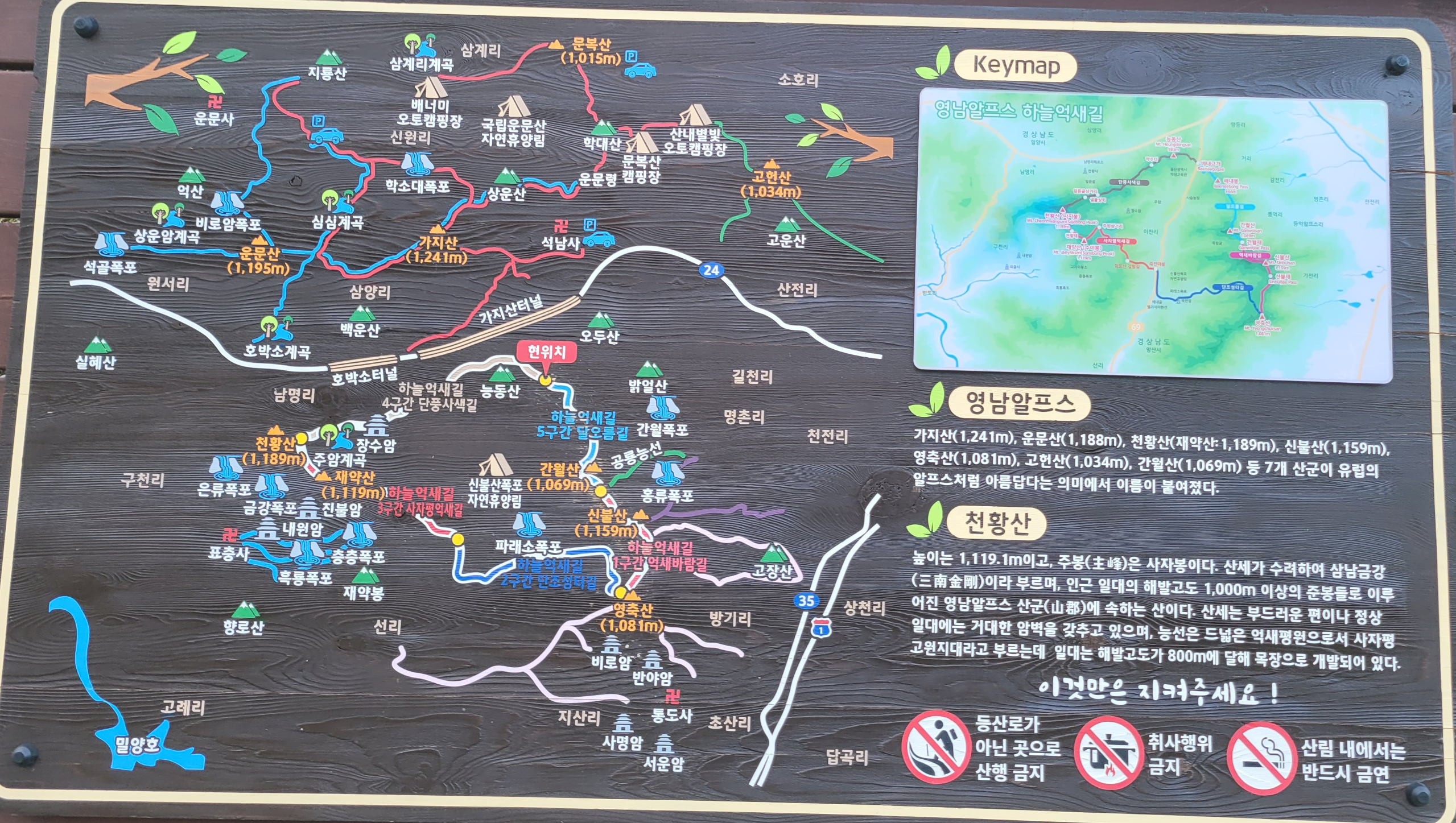 들머리에 있는 지도인데 영남알프스 산이 모두 표시되어있습니다.