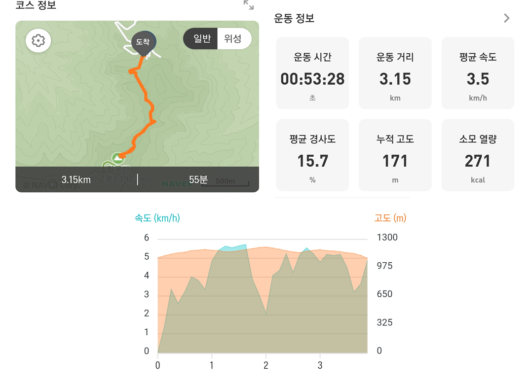 | 왕복 시간 | 약 1 시간 | 왕복 거리 | 약 3km |
